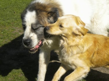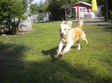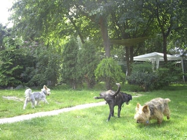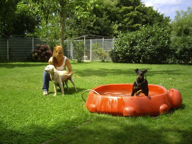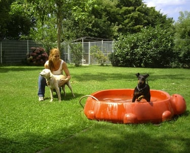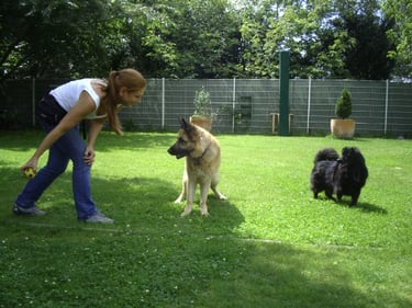 Wenn ihr Hund gerne mit anderen spielt und tobt, versuchen wir ihn in die Spielgruppe zu integrieren. Wir spielen Ball, toben auf der Wiese und im Sommer gibt es auch ein Planschbecken.